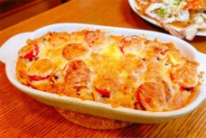 蘿小象芝士焗飯手作意面主打是焗飯焗面,源自于西班牙,米飯被濃濃的芝士掩蓋著,可以搭配各種水果、蔬菜、肉類、海鮮,加以醬汁,制造成各種美好的口味。蘿小象芝士焗飯手作意面一層米飯,一層醬汁,一層奶酪送入烤箱烤至奶酪金黃,可以拉絲的奶酪,濃香美味,口味十分香醇。